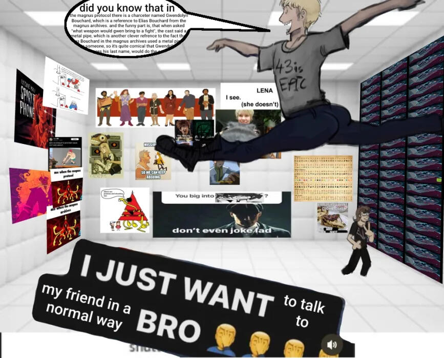 - We have a dog and too many plushies.- If we dont answer for an entire day (or more) its because were hanging out with friends- makeship has a chokehold on us.- we have the entire fnaf movie (with captions) downloaded on our phone/computer/tablet/every device ever.- We have alot of official/fan merch because AUTISM- what is our music taste about? we dont know!- this brain can start liking things in just a minute and now i like too many things.- we use youtube music.